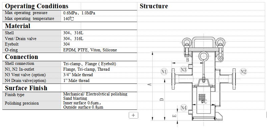 30=In-outlet 3”filter basket size:Φ110×250 6= 316L K=Tri-clamp P=PTFE