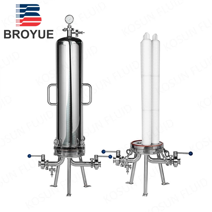 Hygienic Design & ComplianceBroyue sanitary filters are engineered to meet the strictest hygienic standards, featuring:  - Dead-space-free construction for complete drainage and zero product retention  - Fully compliant with GMP requirements for high-cleanliness applications  - 304/316L stainless steel construction with tri-clamp (TC) inlet/outlet connections  - Fully disassemblable design: Removable housing and cartridge plate enable 360° cleanability  - Ultra-smooth surface finish: Mirror polish (Ra <0.4μm) on all housing internal surfaces  - Multi-brand compatibility: Supports Pall, Millipore, and 3M filter cartridges
